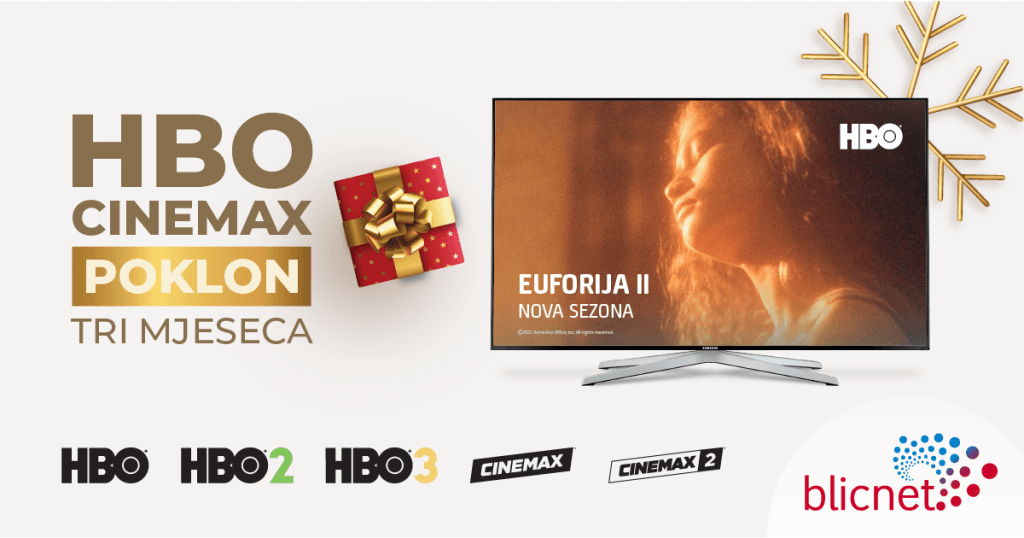 Pretplatnici Blicnet digitalne kablovske televizije mogu da uživaju još tri mjeseca u odličnim filmskim i serijskim naslovima na HBO i Cinemax TV kanalima koje dobijaju na poklon. Sa novom akcijskom ponudom korisnici koji aktiviraju HBO i Cinemax TV paket, prva tri mjeseca od dana aktivacije, filmski paket gledaju bez plaćanja mjesečne naknade za paket.