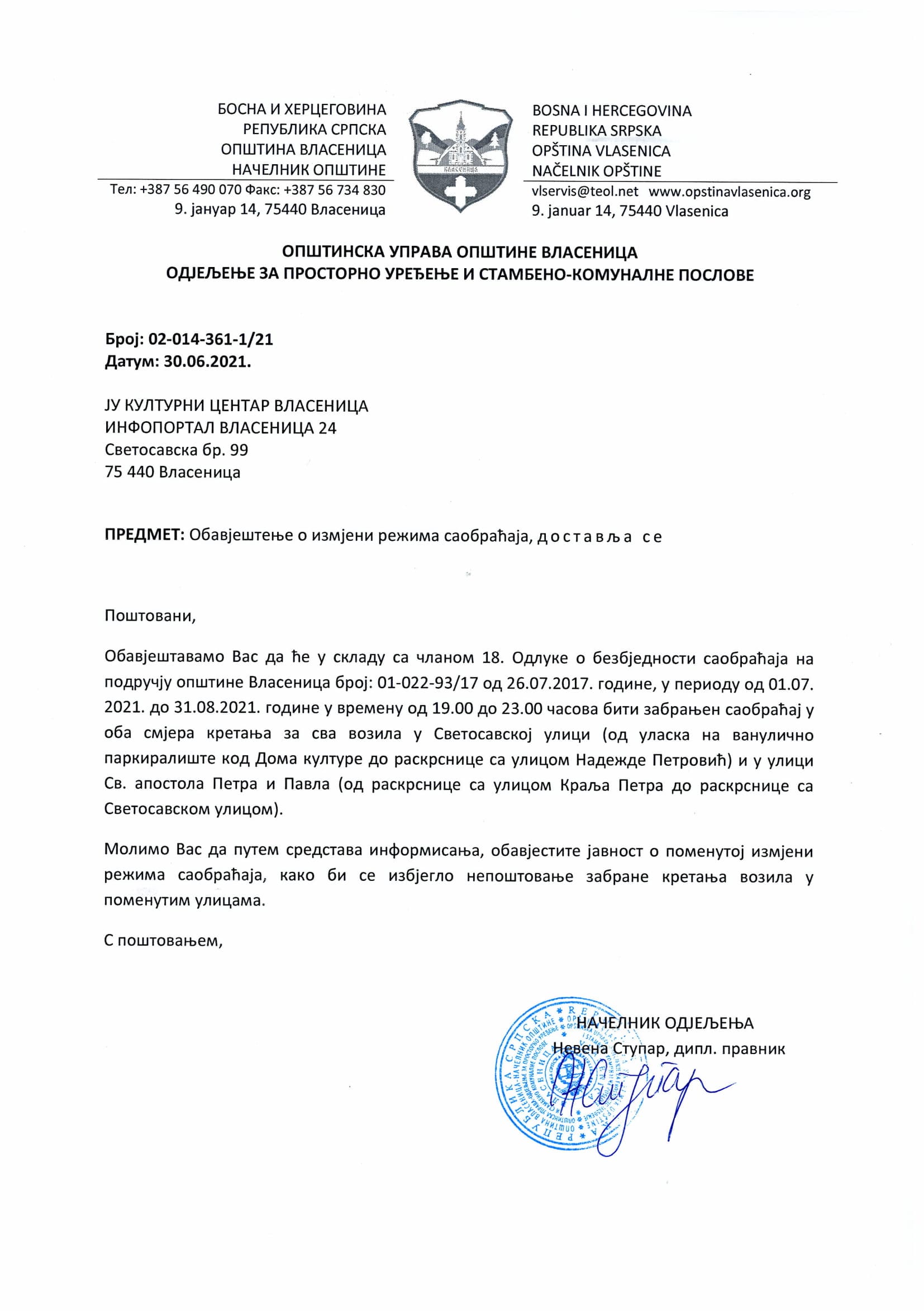Насловна » ИЗМЈЕНА РЕЖИМА САОБРАЋАЈА КРОЗ ЦЕНТАР ГРАДА
