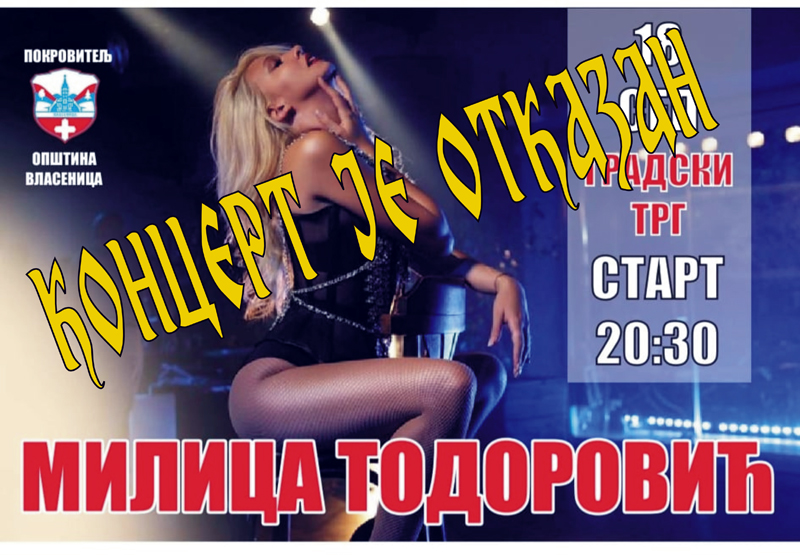 „Иако смо, за Дан наше општине, планирали обрадовати наше суграђане концертом естрадне звијезде Милице Тодоровић, нажалост, неповољне временске прилике довеле су до тога да ова музичка манифестација мора бити одгођена. Узимајући у обзир да је Тодоровићева веома популарна и да су њени наступи испланирани мјесецима унапријед, нови термин не зависи само од нас, али, чим он буде утврђен, наши суграђани, али и комшије из цијеле регије које воле музику популарне пјевачице, биће обавијештени о томе. Свима нам је веома жао због овог одгађања, али на временске прилике не можемо утицати“, саопштили су из Општинске управе Општине Власеница, која је организатор и покровитељ овог догађаја.