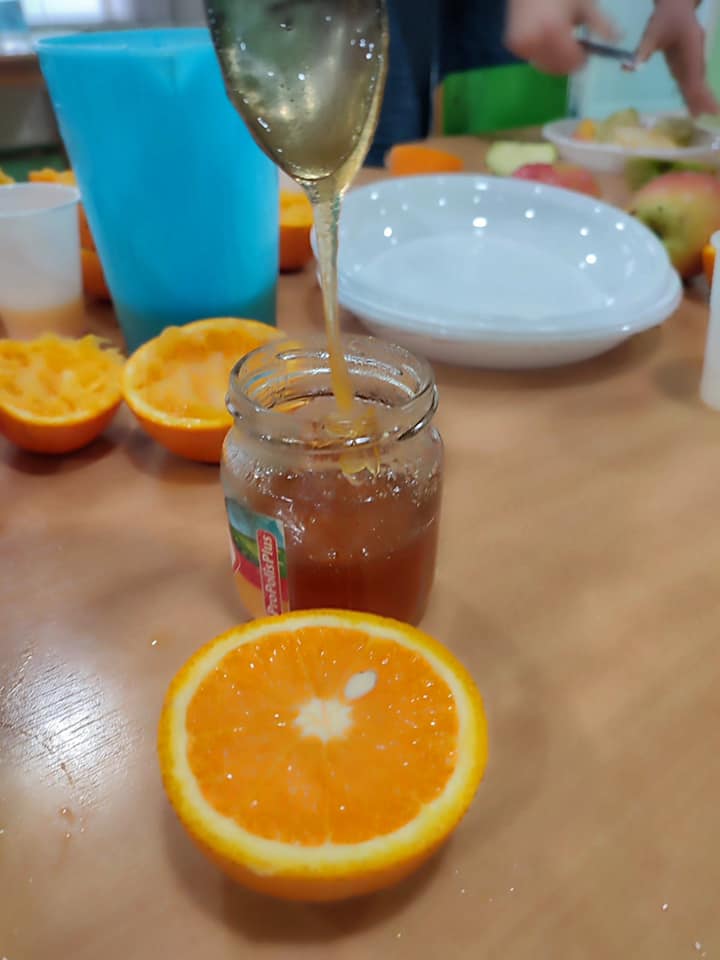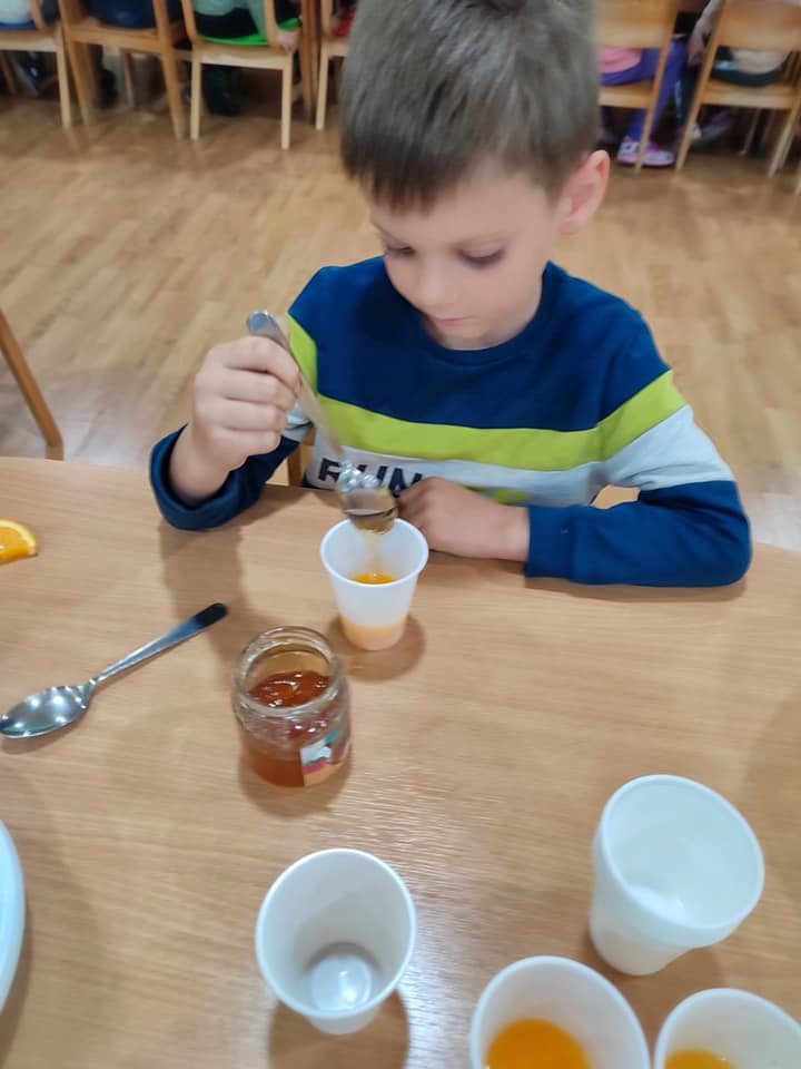 Уз помоћ својих васпитачица малишани су правили воћну салату и лимунаду са цитрусом коју су засладили медом, а кроз игрицу „Погоди по укусу“ погађали које су поврће пробали.