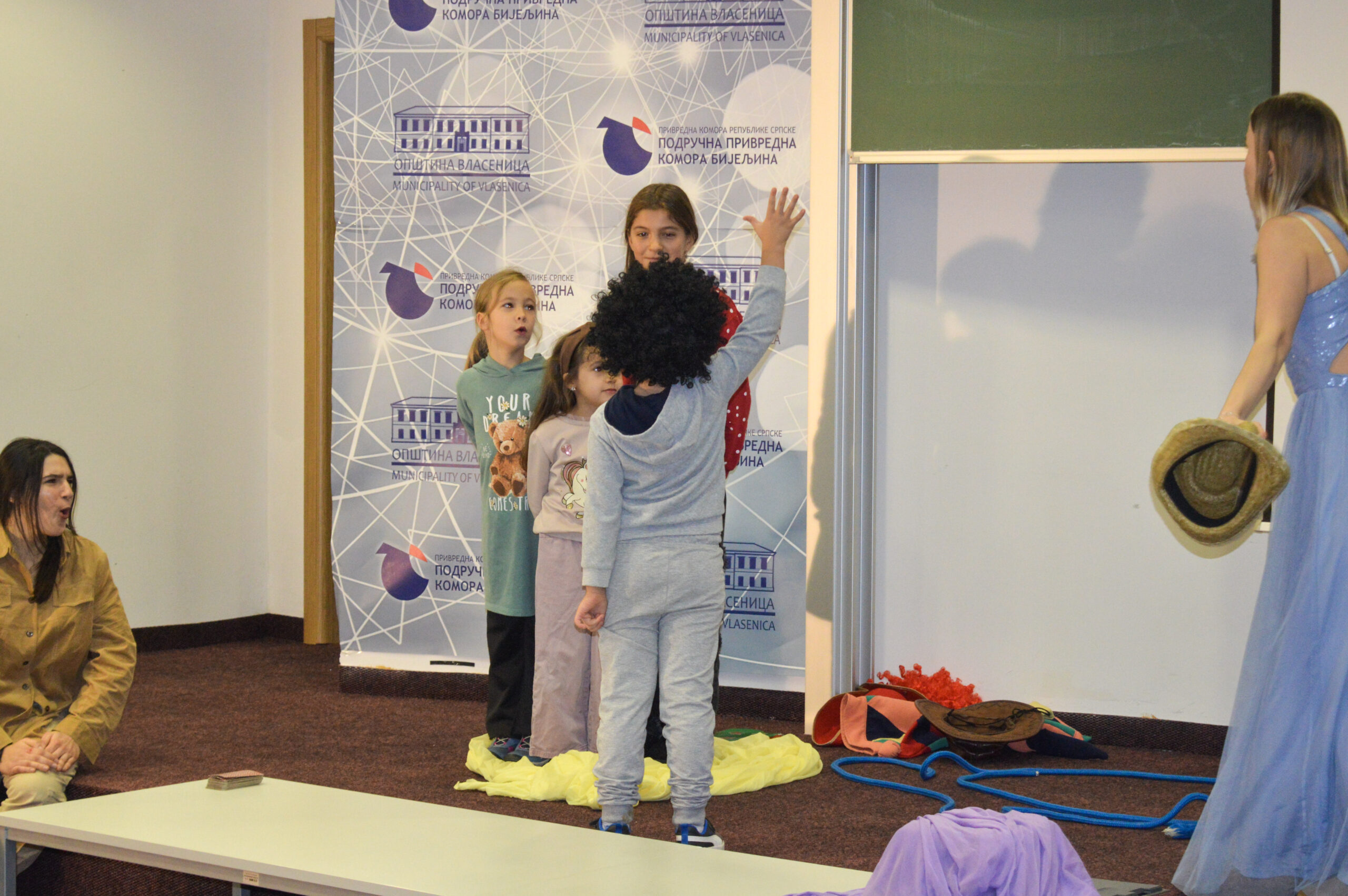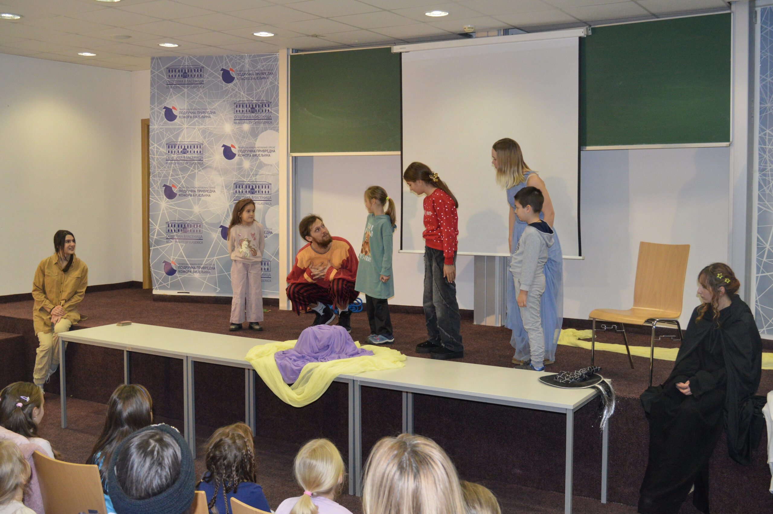 Најмлађи суграђани данас су уживали у позоришној представи „Приче из давнина“, у извођењу бањалучког позоришта младих „ДИС“. Живописни ликови и хумор изазвали су одушевљење код дјеце, која су активно учествовала током извођења.