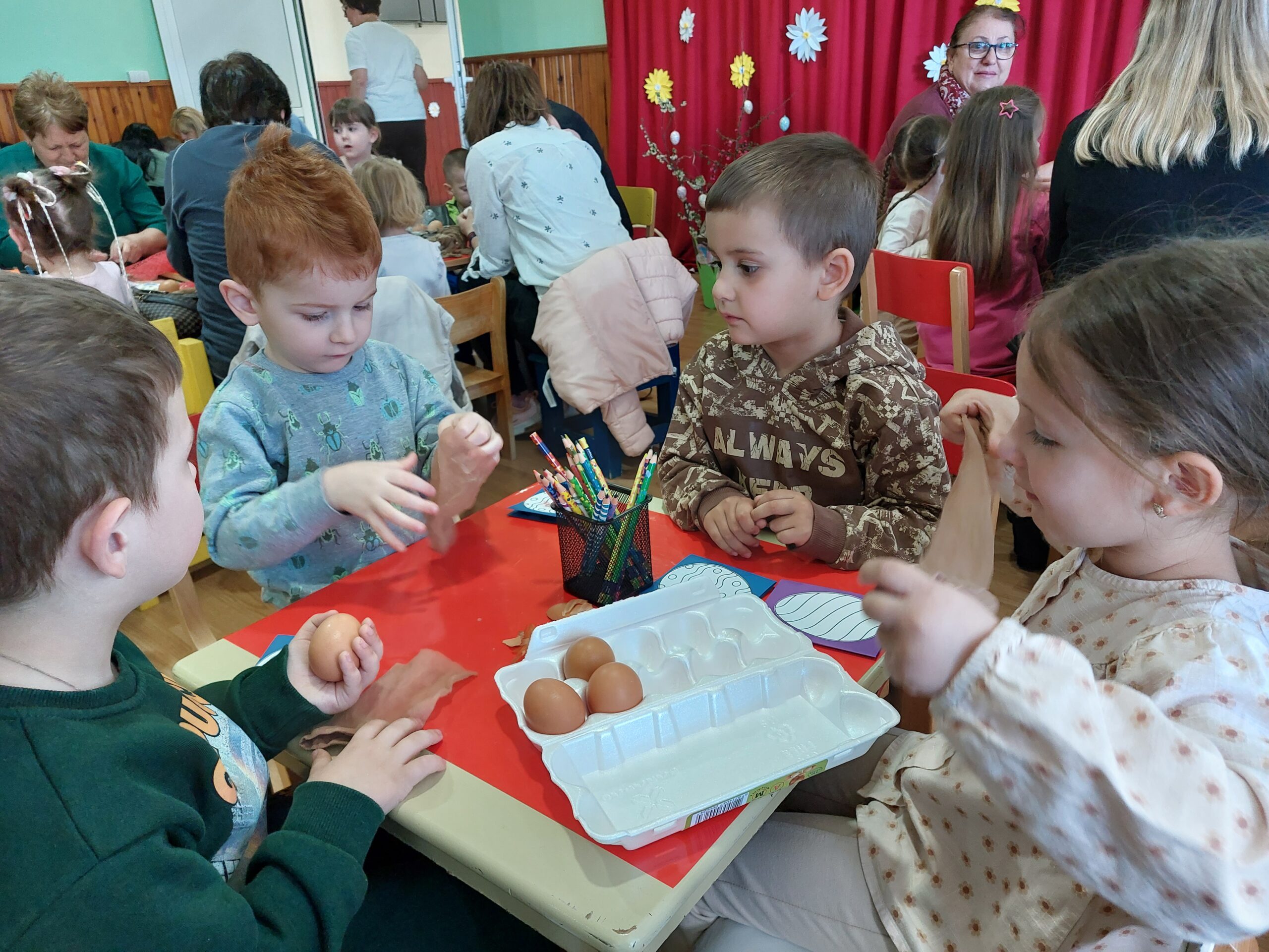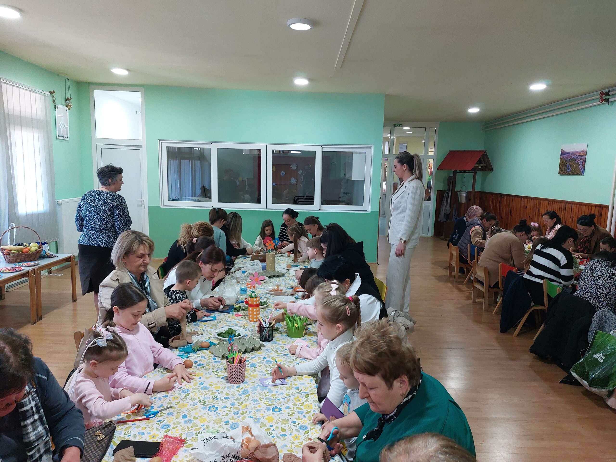 У пријатној и веселој атмосфери, 50 дјеце из млађе и средње вртићке групе заједно са својим бакама учествовало је у традиционалном шарању васкршњих јаја. Баке су донијеле јаја, док је вртић обезбиједио сав потребан материјал и декорацију, чиме је простор претворен у праву празничну радионицу.